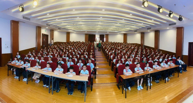 After experiencing the preliminary stage, the small actors of the final stepped onto the big stage of the academic hall. The small judges under the stage are also listening carefully and scoring.