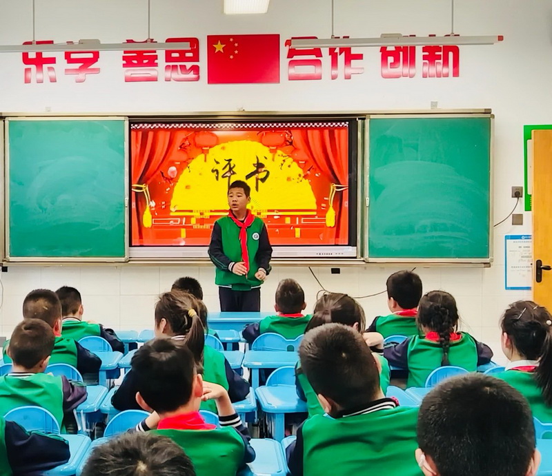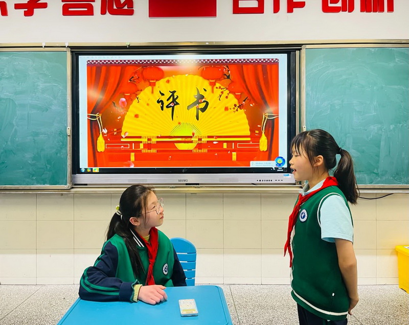 本次活动前,老师首先带领孩子们学习书本中的经典名著,而后播放了精彩的评书视频,随着说书人抑扬顿挫的语调,孩子们时而静静聆听,时而开怀大笑,完全沉浸于评书所娓娓道来的精彩世界里。有学生已经按捺不住跃跃欲试的心情,随即五年级各班开启了讲评书的序幕!