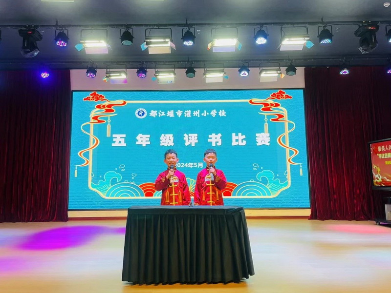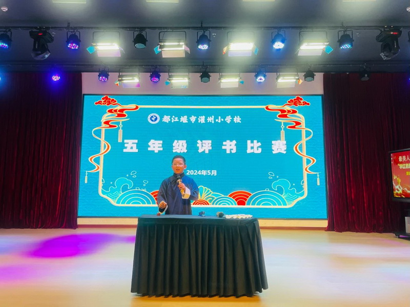 评书,又称说书、讲书,是一种古老的中国传统口头讲说表演艺术形式。为弘扬中华优秀文化,传承非遗艺术,进一步增强中华民族的文化自信,丰富校园文化生活,培养学生兴趣爱好,提高学生艺术修养。2024年5月6日,灌州小学校五年级的学生开启一场精彩纷呈的评书表演。