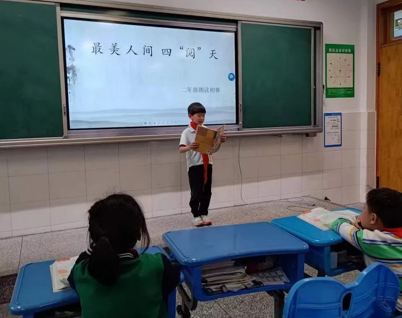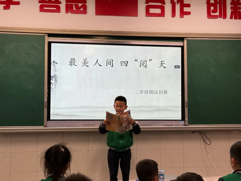 初赛朗读内容为课内文章的精彩文段,人人参与。每位孩子捧起书本,信心满满地投入到朗读比赛中。