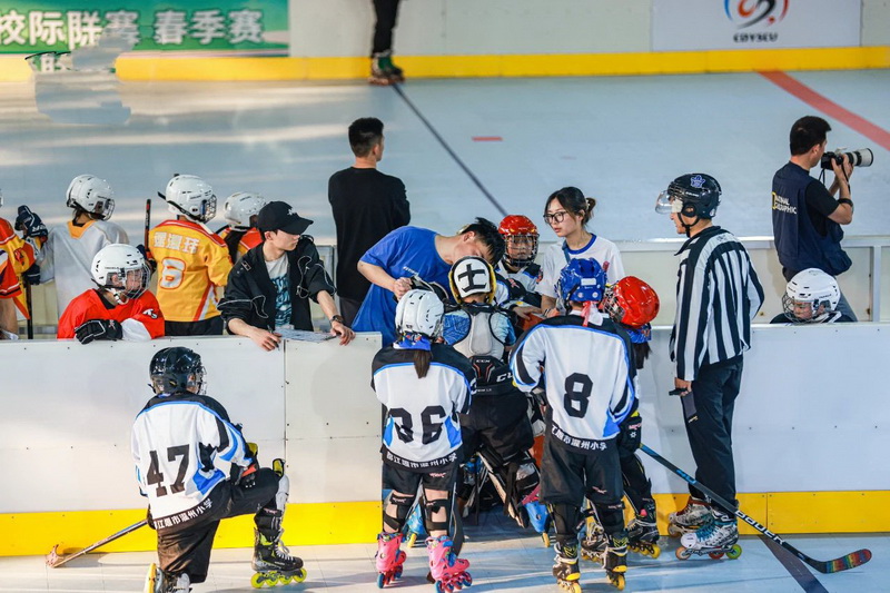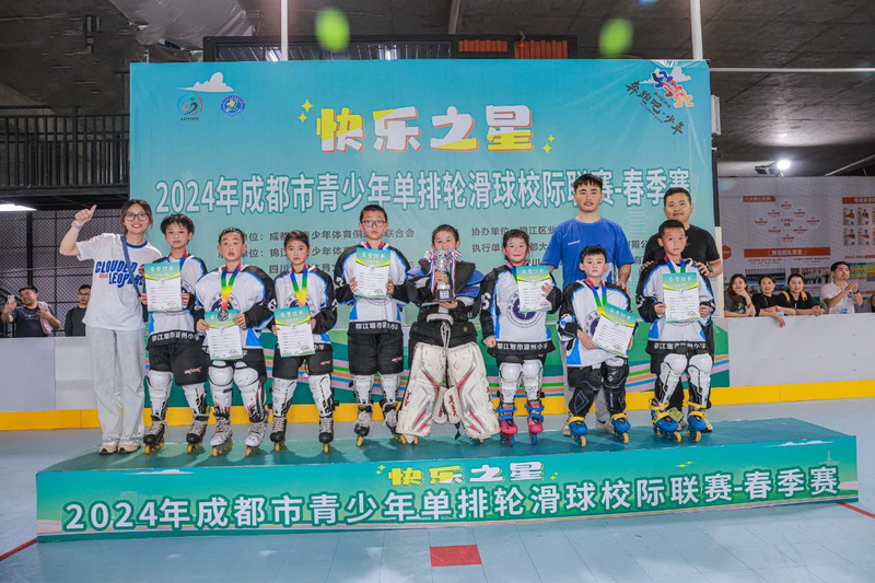 本次联赛的35支参赛队伍分别来自锦江区、高新区、武侯区、天府新区、都江堰、德阳等区域的小学轮滑冰球代表队,运动员人数达337人。共设组别一年级组、二三年级组、四五六年级组。经过我校8名学生的奋勇拼搏,取得了校队组第二名的优异成绩。