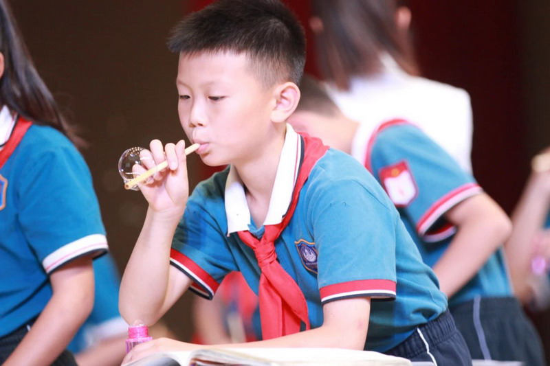 课堂上,付玉老师让孩子们通过吹肥皂泡去感受作者的快乐,借助联系上下文、结合生活经验、查找资料等多种方法,理解了文章中难懂的词句,深入体会作者丰富的内心情感。