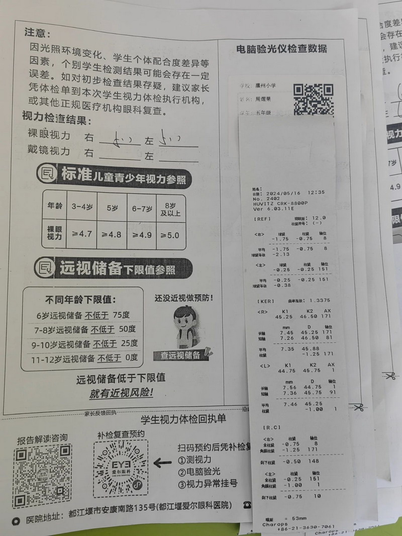 本次视觉健康检查由都江堰市教育局指定眼科医院的医生和验光团队到校进行,为学生们做了全面的视力测试和眼部健康答疑,检查项目包括裸眼视力、屈光球镜、柱镜、电脑验光、戴镜视力、眼底检查等。