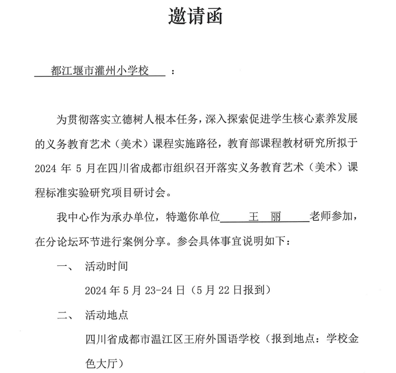2024年5月23日,由教育部课程教材研究所主办的落实义务教育艺术(美术)课程标准实验研究项目研讨会在成都王府外国语学校隆重举行。