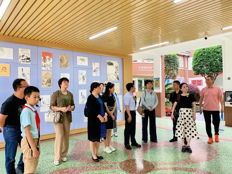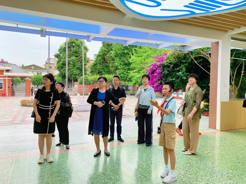 孟夏时节,校园内草木繁盛,绿意盎然,来宾们在马长俊校长和红领巾志愿者的引领下参观了学校,沉浸式感受灌小“至善向美”的校园文化特色。