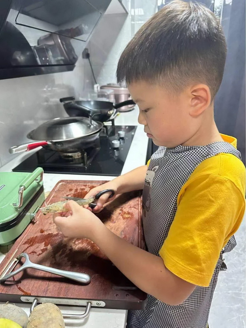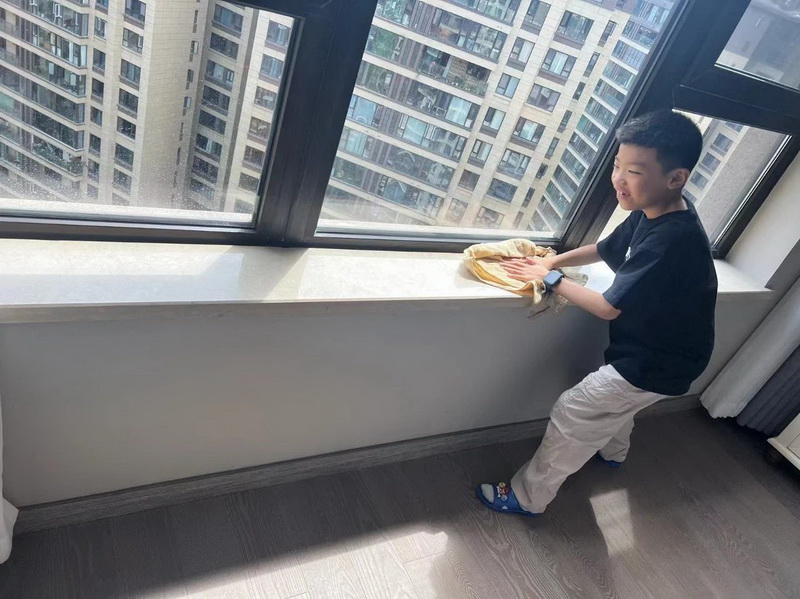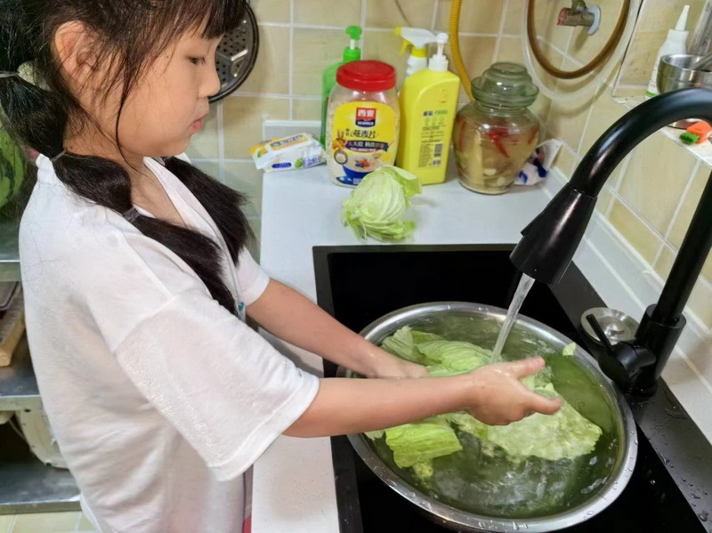 有什么事情能让家人更开心呢?孩子们开动脑筋,使出全身解数,叠被子、做饭、择菜、打扫、洗碗,还有的给长辈擦汗、捶背、洗脚、洗鞋子,陪爸爸干活儿,去超市买菜……真是花样百出,创意无限啊!着实让家人过了一个花样“六一”!