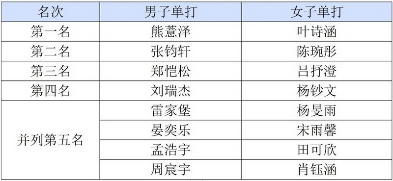 经过激烈的角逐,我校熊薏泽获得此次比赛六年级男子组冠军
