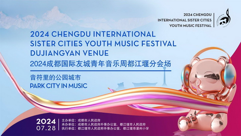 此次2024成都国际友城青年音乐周都江堰分会场活动由成都市人民政府主办,成都市人民政府外事办公室、都江堰市人民政府承办。