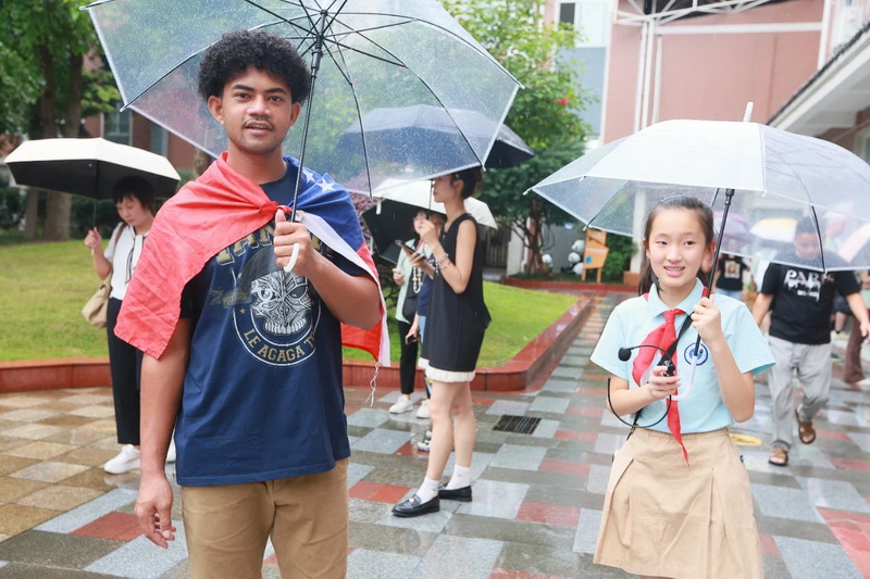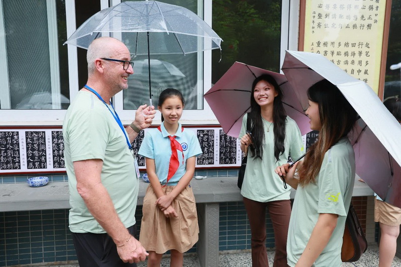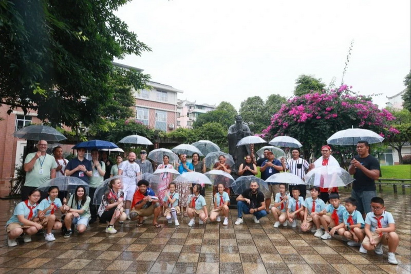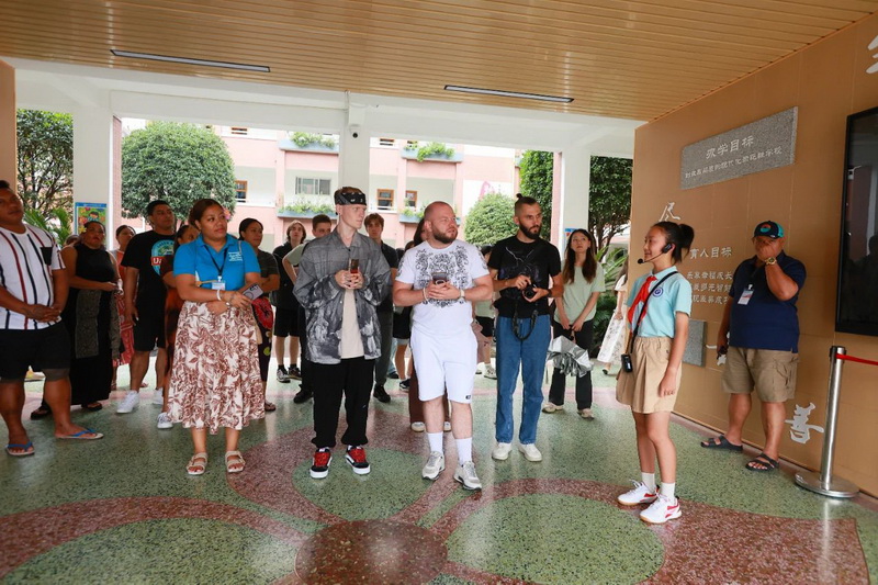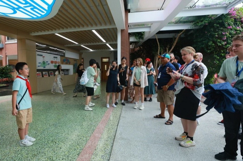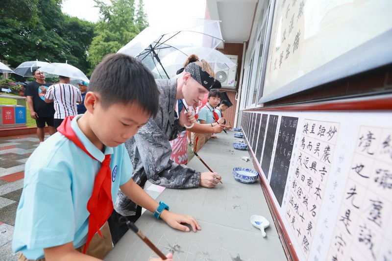 7月28日上午,参演团的30余名国际友人一行走进我校,开展音乐交流活动。参演团成员在我校红领巾志愿者的带领下参观学校,体验了传统书法的魅力。