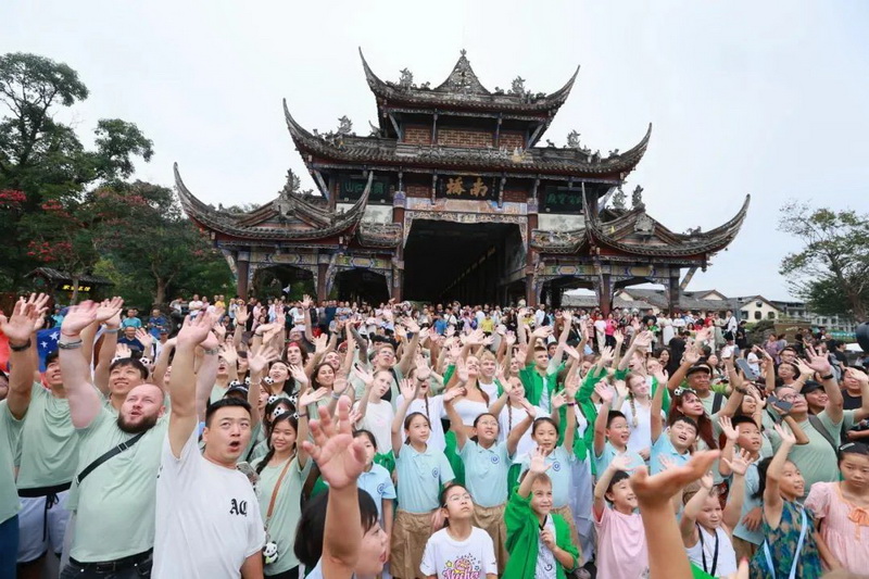 受都江堰外事办邀请,我校学生还到南桥与参演团的成员们共同合唱歌曲《成都》。