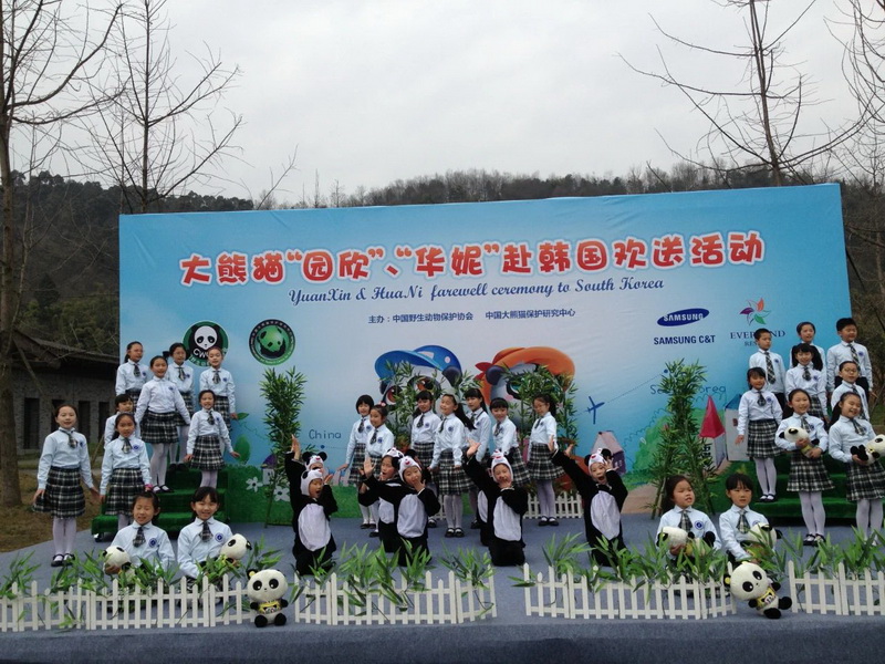 2016年,欢送熊猫赴韩国,我校学生表演《熊猫的摇篮》,并上了中新网。