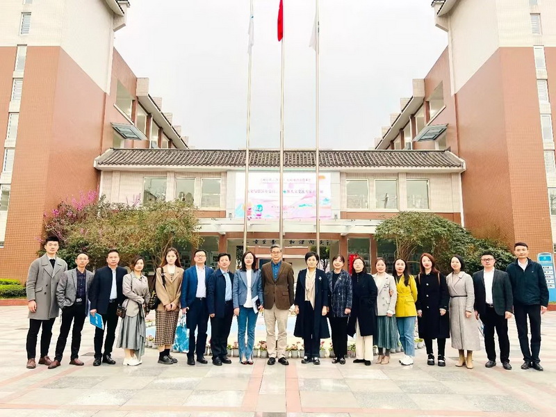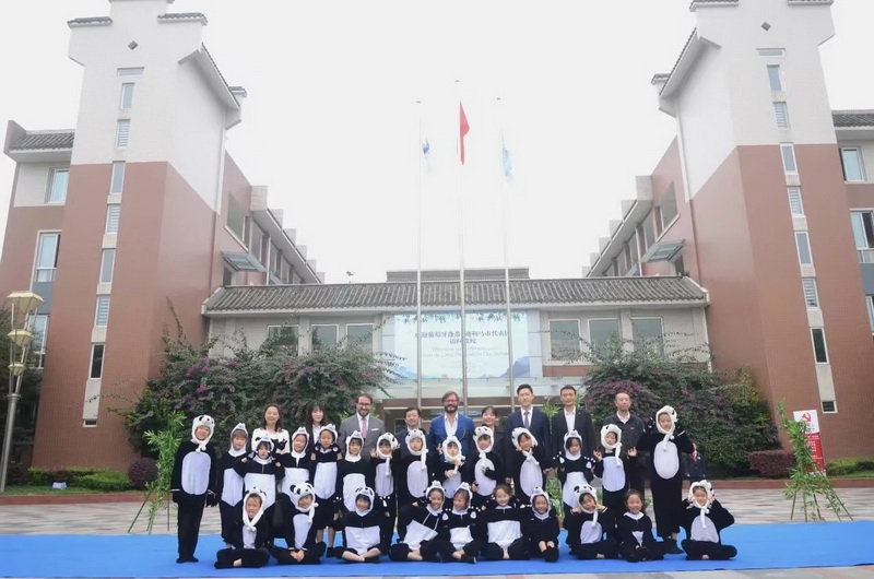 2023年,教育部中外人文交流中心领导、成都市教育对外交流中心领导、都江堰市教育局党组、市外事办领导莅临我校开展调研活动,孩子们热情表演了舞蹈《熊猫乐园》。