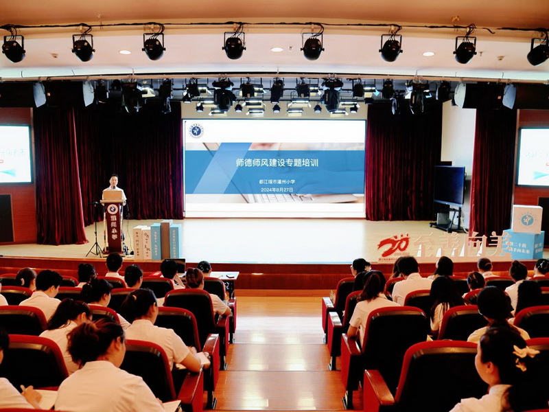 学校教师发展中心李书主任作“师德师风建设”专题培训,并带领全体教职工签署《师德师风承诺书》。坚守教育初心,潜心立德树人。我校坚持把师德师风建设作为教师队伍建设的第一要务,不断推动教师队伍高质量发展,书写培根铸魂育人新篇。