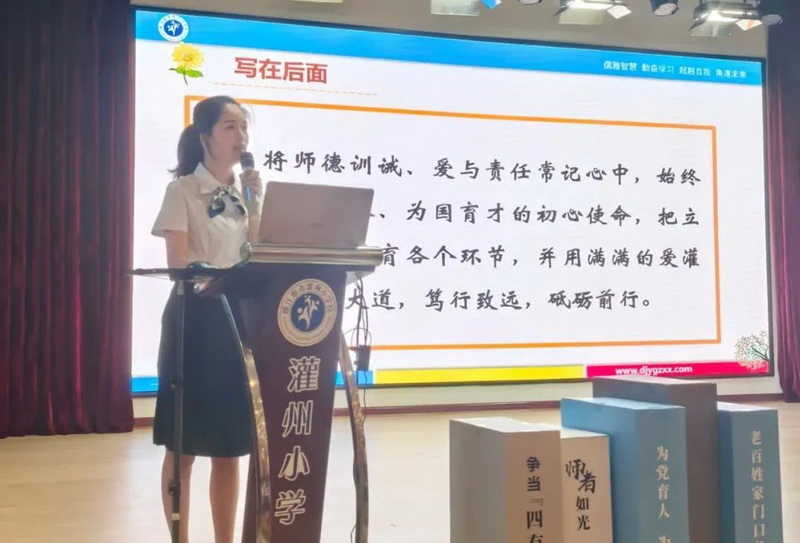Li Shu gave an in-depth explanation for all the staff around the topic of education on teacher ethics and morality and led all the staff to sign the commitment to teacher ethics and morality.