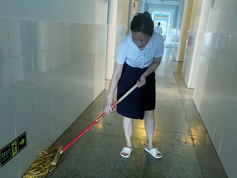 In order to create a good dormitory environment for students, life teachers carefully disinfect and clean every corner.