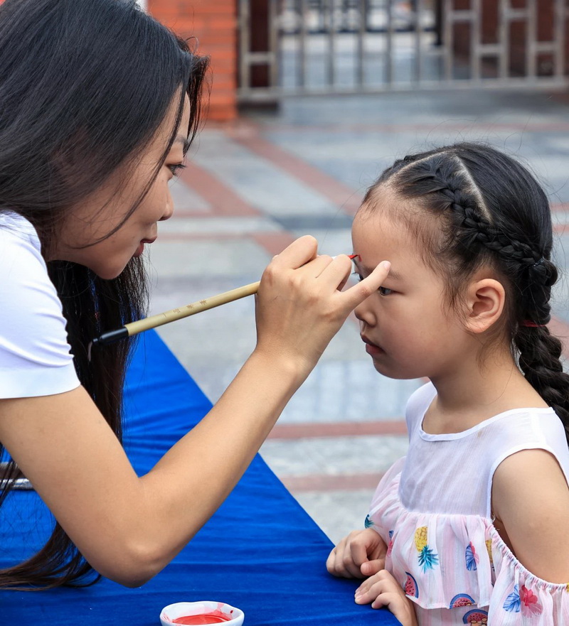 踏入校门,老师们手持朱砂笔,在孩子们的额头轻轻一点,寓意着朱砂启智。那一点鲜红,宛如智慧的火种,点亮了孩子们懵懂的心灵,开启了他们求知的大门。从此,他们将在知识的海洋里遨游,探索无尽的奥秘。
