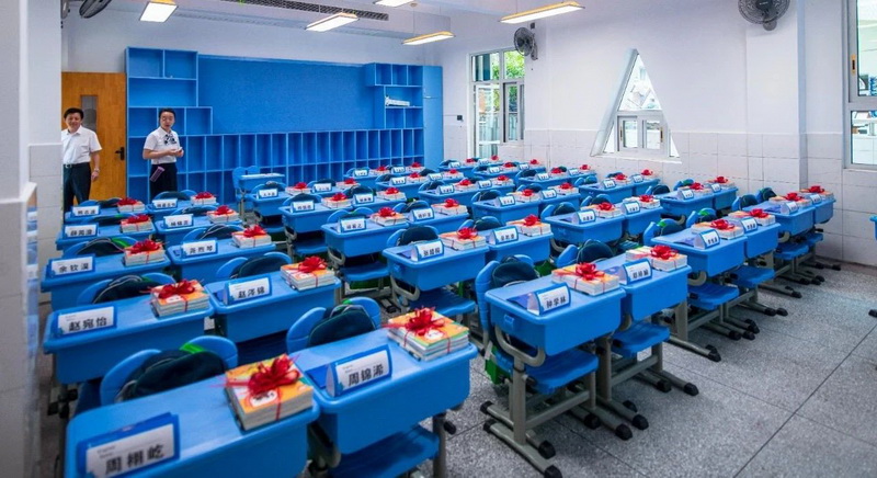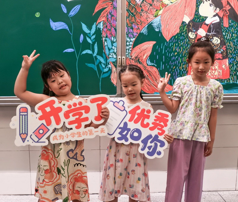 精心布置的教室里,五彩斑斓的板报、整齐的课桌椅以及散发着油墨清香的书本,都在热情地迎接孩子们。孩子们看到老师精心准备的这一切,兴奋之情溢于言表。