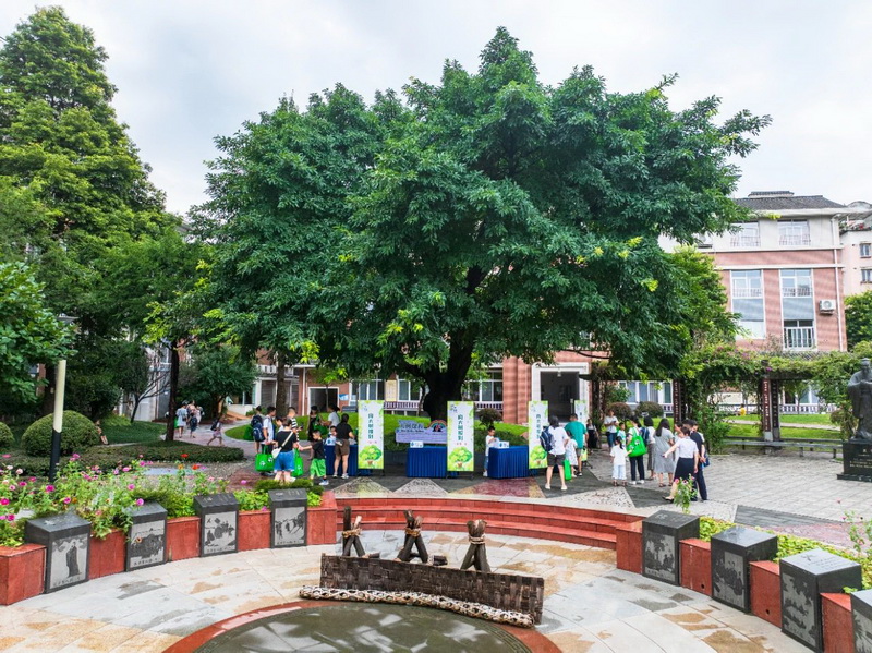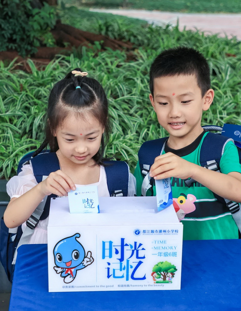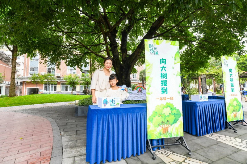 孩子们来到了学校的后花园向大树报到。孩子们小心翼翼地将自己的时光记忆卡投递到时光记忆盒中,那一张张卡片,承载着他们纯真的梦想和对未来的美好憧憬。