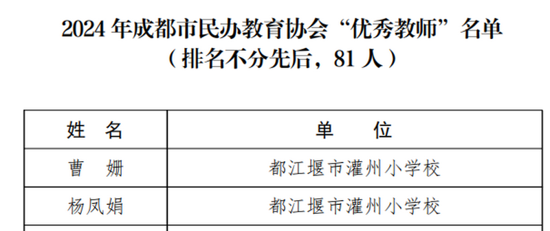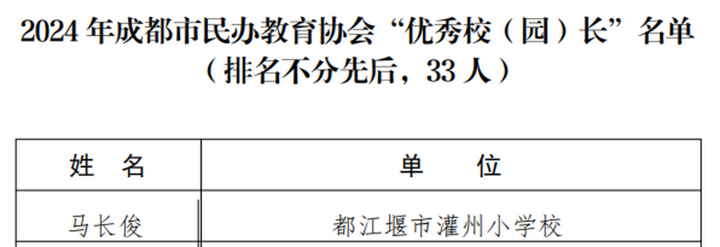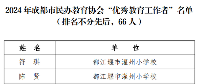 成都市民办教育协会优秀校(园)长、优秀教师、优秀教育工作者