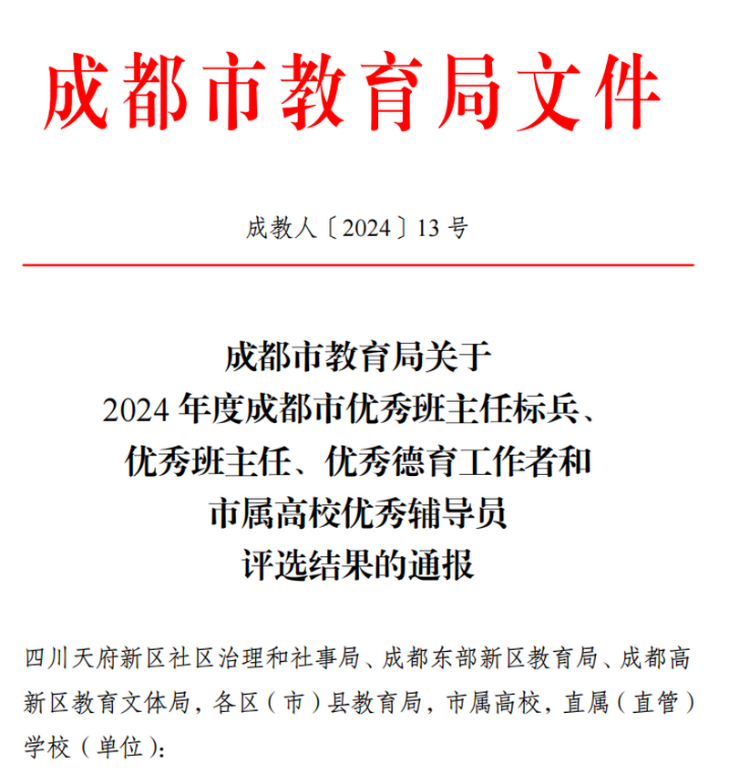 Chengdu Outstanding Head Teacher, Outstanding Moral Education Worker