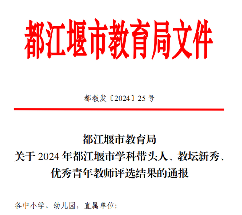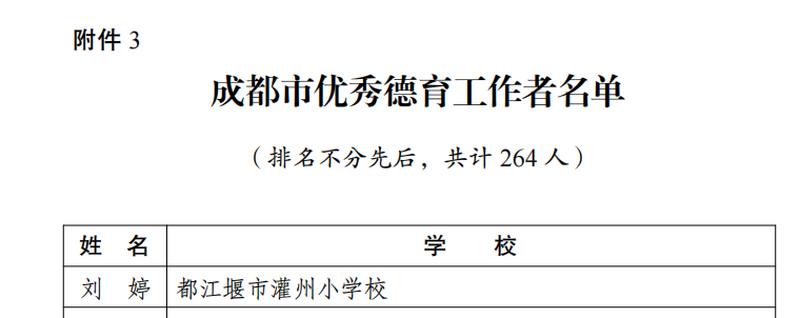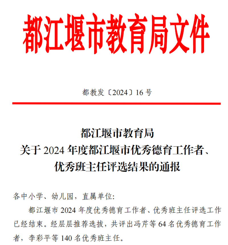 Dujiangyan Outstanding Head Teacher, Outstanding Moral Education Worker