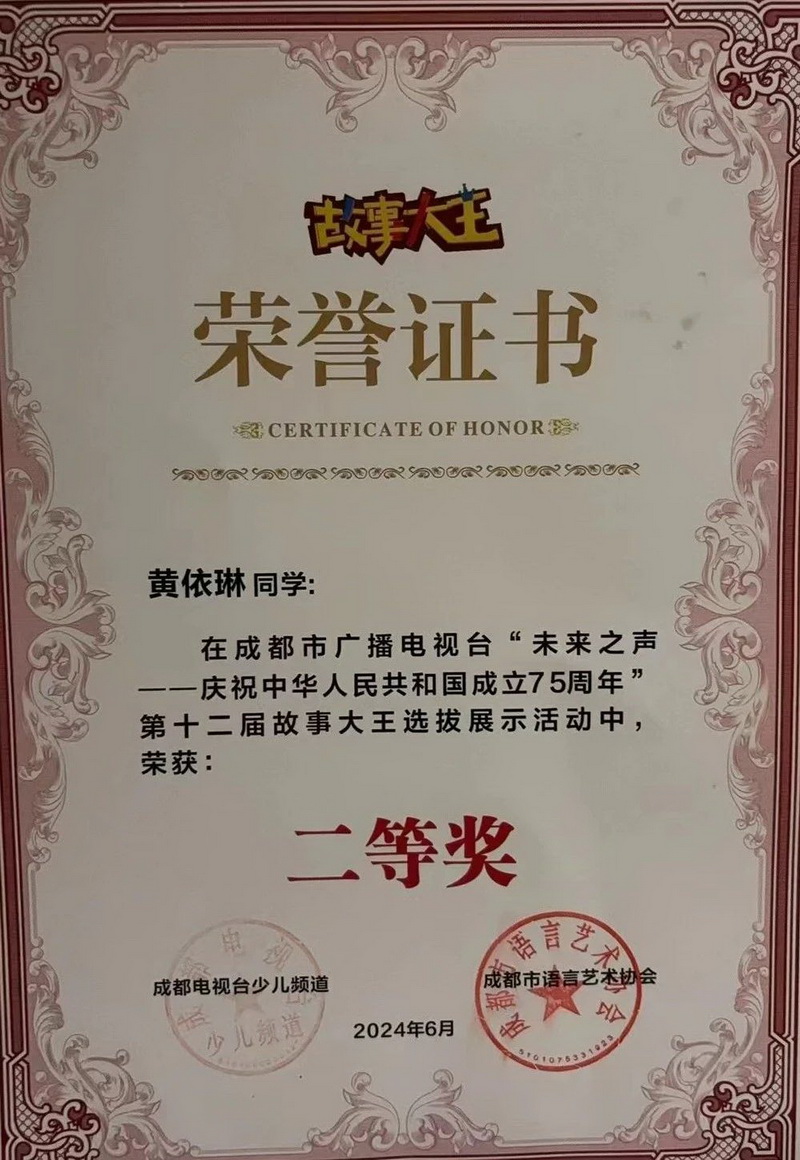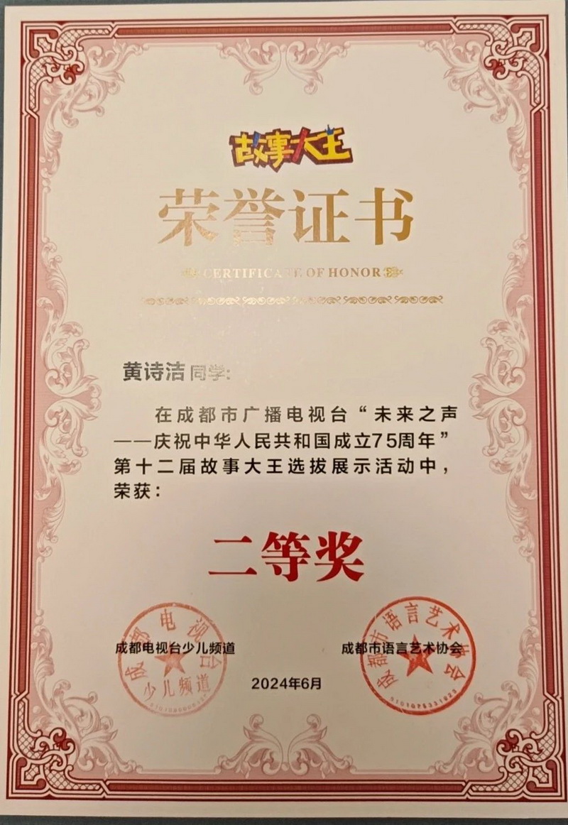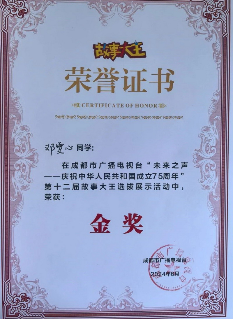 This activity, sponsored by Chengdu Radio and Television Station, was divided into four stages: preliminary, semi-final, final and national finals. After layers of screening, 127 students in our school stood out from thousands of contestants.