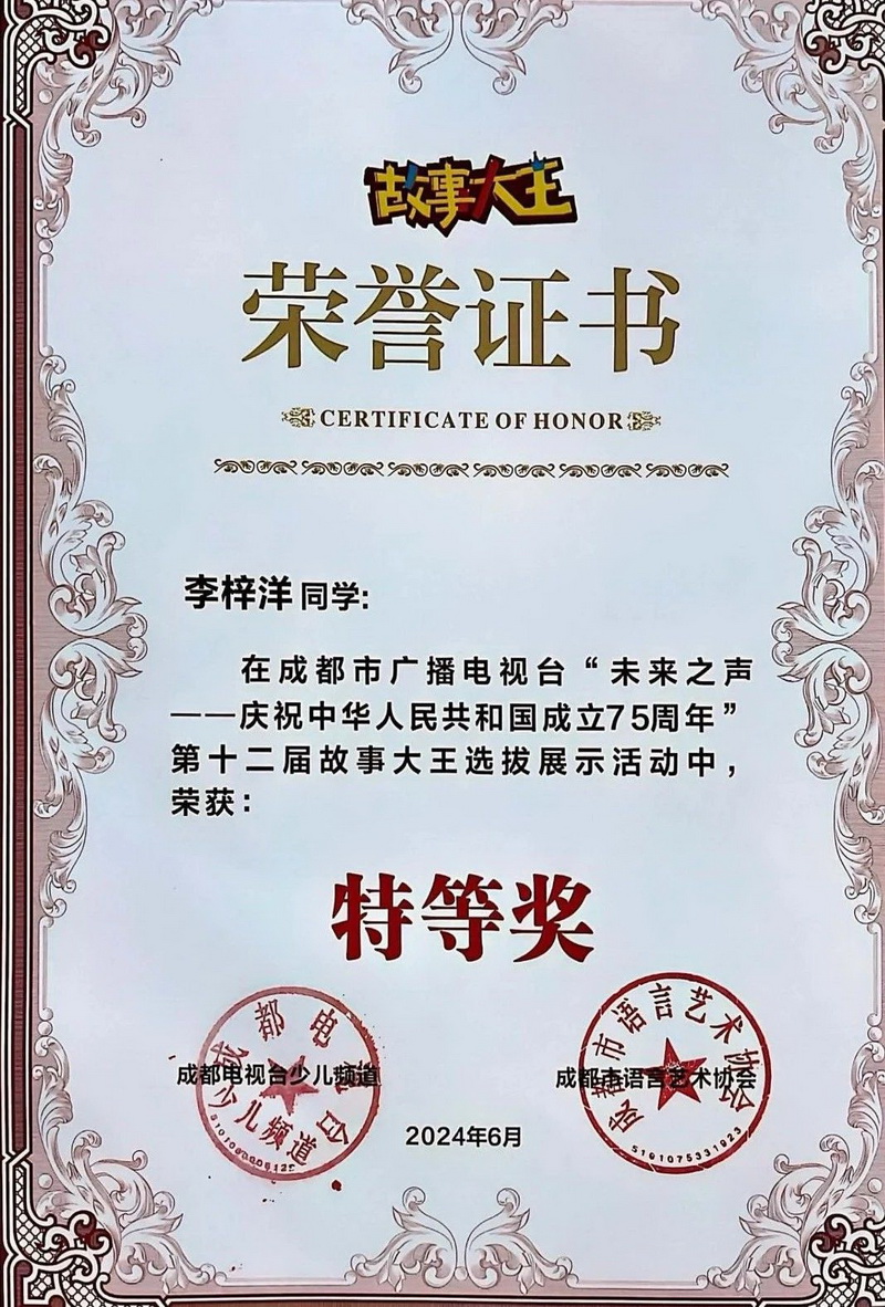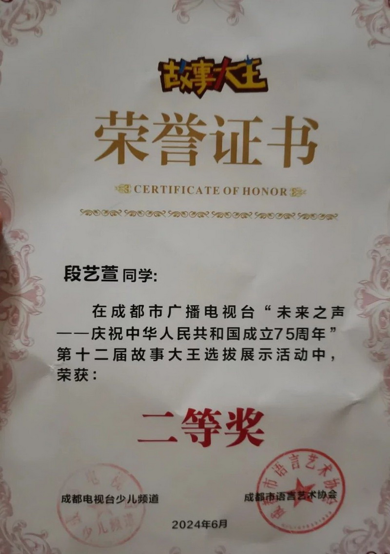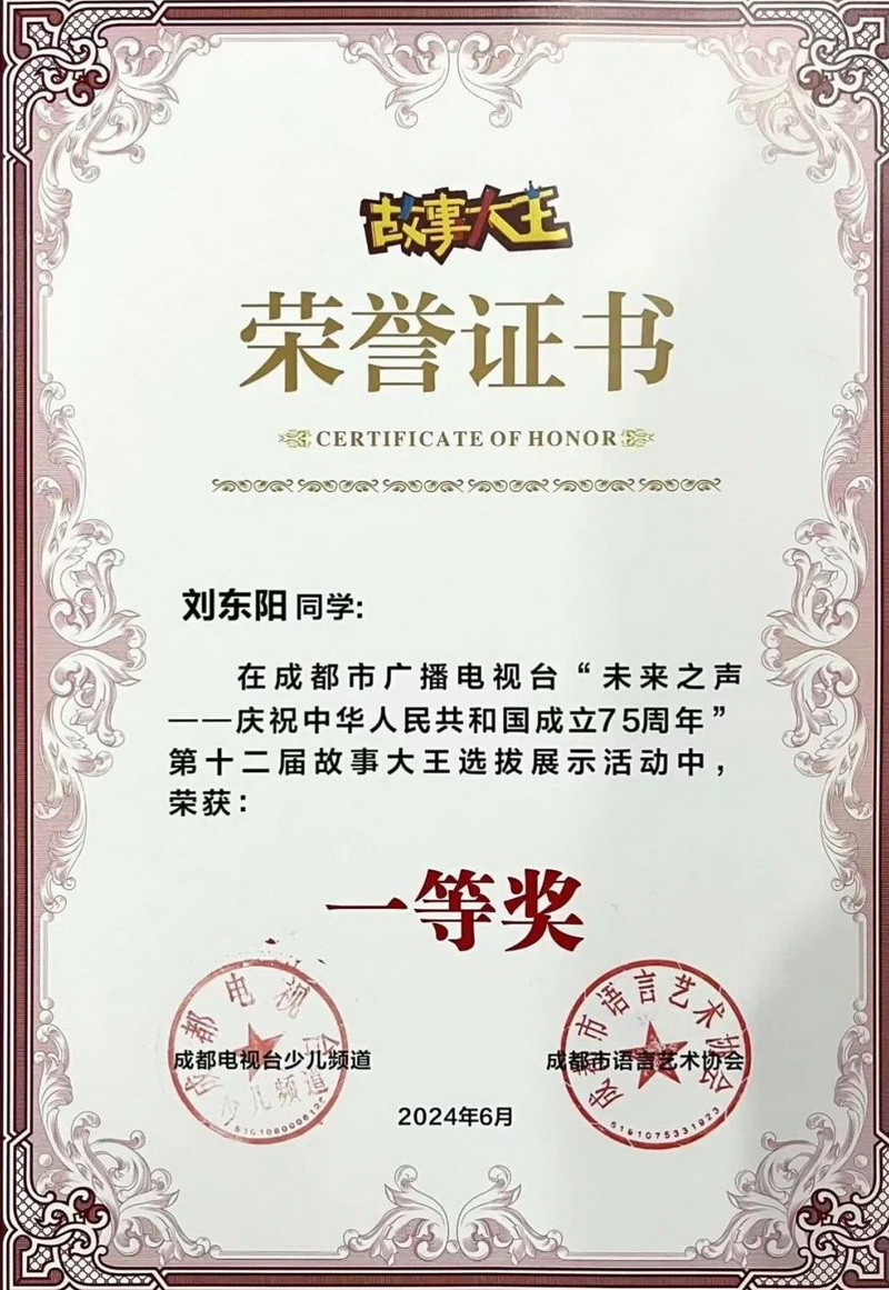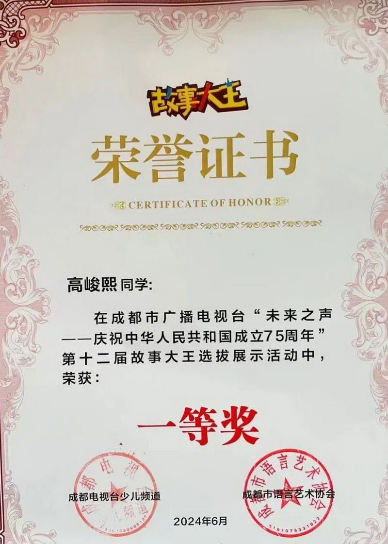 2024年是新中国成立75周年,也是我校建校20周年。为了贯彻落实习近平总书记“讲好中国故事,传播好中国声音”的指示精神,我校积极组织学生参加全国第12届“故事大王”选拔展示活动,开展爱国主义教育,同时为校庆献礼。