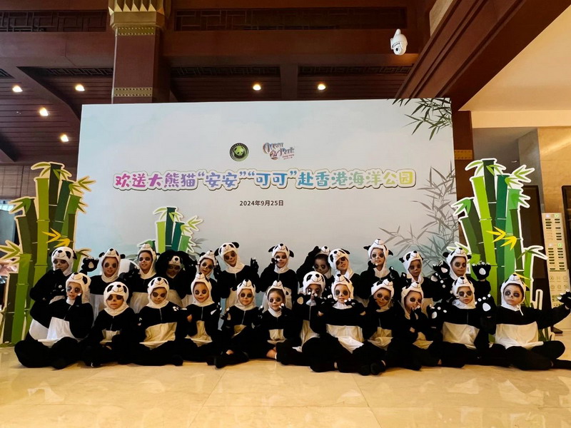 On the afternoon of September 25th, the ceremony of sending giant pandas "An An" and "Coco" to Ocean Park in Hong Kong was held in Dujiangyan.