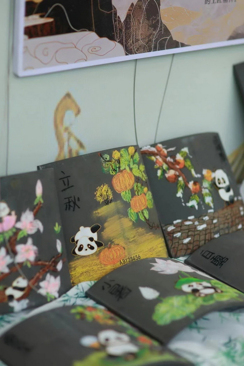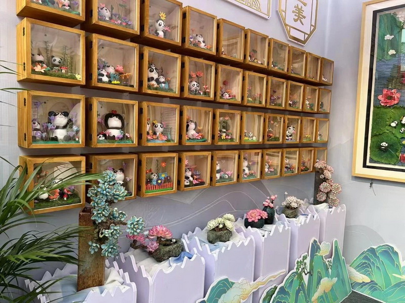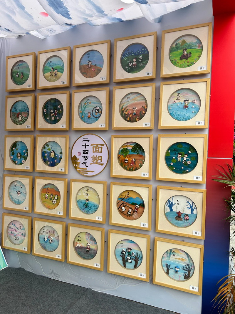 面塑展示区与景泰蓝展示区,形态各异、憨态可掬的熊猫以及24节气。