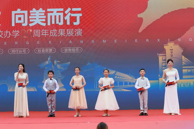 值此办学20周之际,我校隆重举行美育展演活动,全校学生百分这百参与。我们也邀请了全校两千多位学生家长观看了文艺汇演和艺术作品展。
