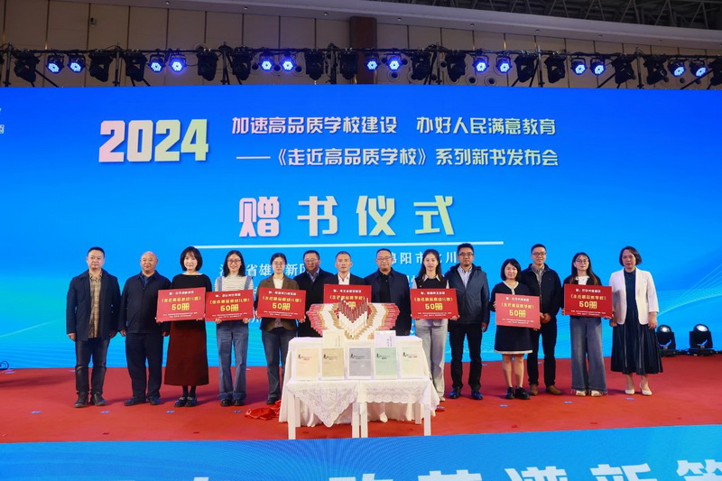 为进一步推广课题研究成果,促进更多学校高品质发展,让更多师生受益,发布会现场举行了新书捐赠仪式。课题组向河北省雄安新区、巴中市恩阳区、甘孜州稻城县、绵阳市北川县、阿坝州九寨沟县、凉山州甘洛县、甘孜州康定市等地学校共捐赠350册图书。
