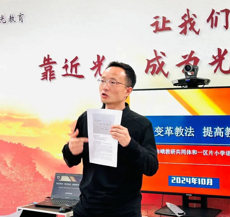Teacher Shi Zhi from Puyang Primary School closely followed the text and explained his practice in the actual teaching.