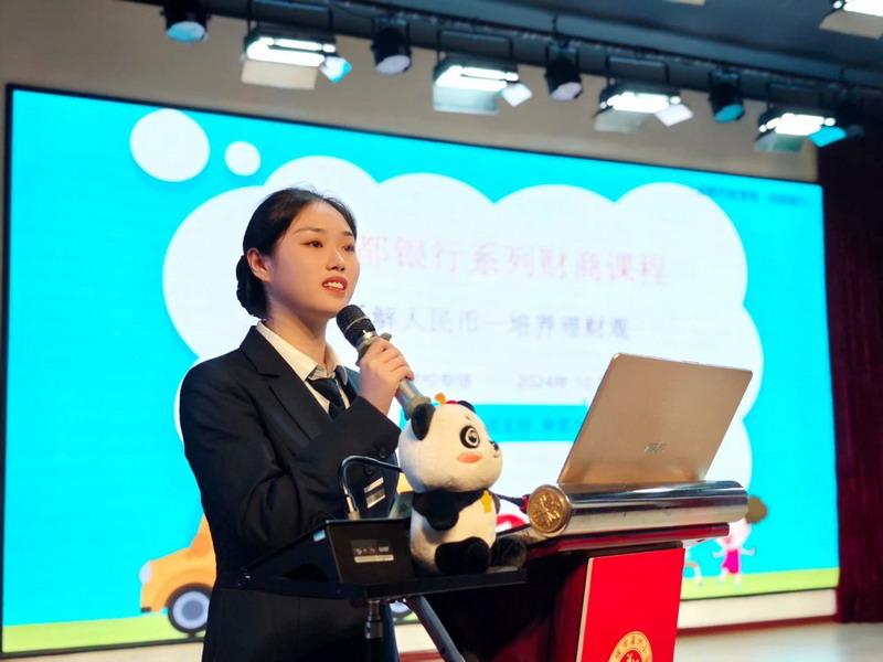 本次活动,由成都银行都江堰大道支行的申思玥讲师围绕“了解人民币 培养理财观”这一主题开展了精彩纷呈的财商知识讲座。