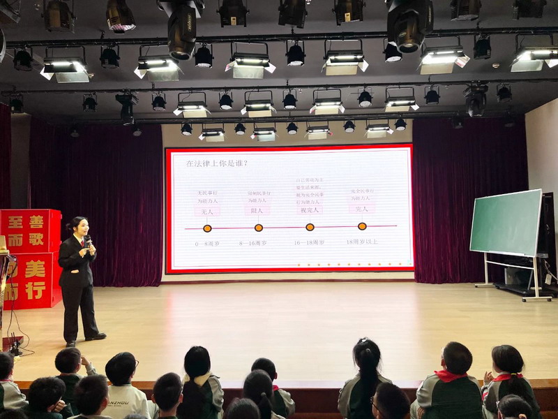 课堂伊始,刘沙校长简要介绍了《民法典》的基本信息,随后以“在法律上你是谁”这一问题巧妙抛出,瞬间激发了学生们的浓厚兴趣。