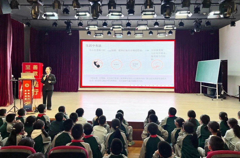 接着,刘沙校长以“生活中的民法典”为主题,从生活有法、学校有法、消费有法三个方面展开讲解。刘沙校长通过一个个生动的例子,让学生们明白民法典在日常生活中的重要作用,并深刻认识到法律不仅存在于社会中,也在校园的每一个角落发挥着重要作用。
