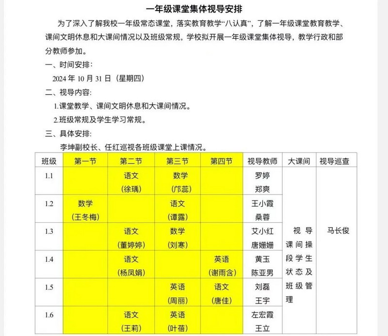 On October 31, 2024, the School Curriculum Development and Guidance Center conducted regular research and guidance on the education and teaching work of first grade students.