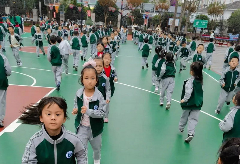 本次视导工作还观摩了一年级的大课间活动和课间餐的就餐管理情况。