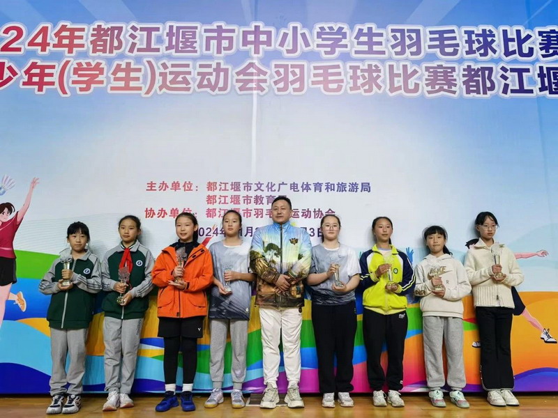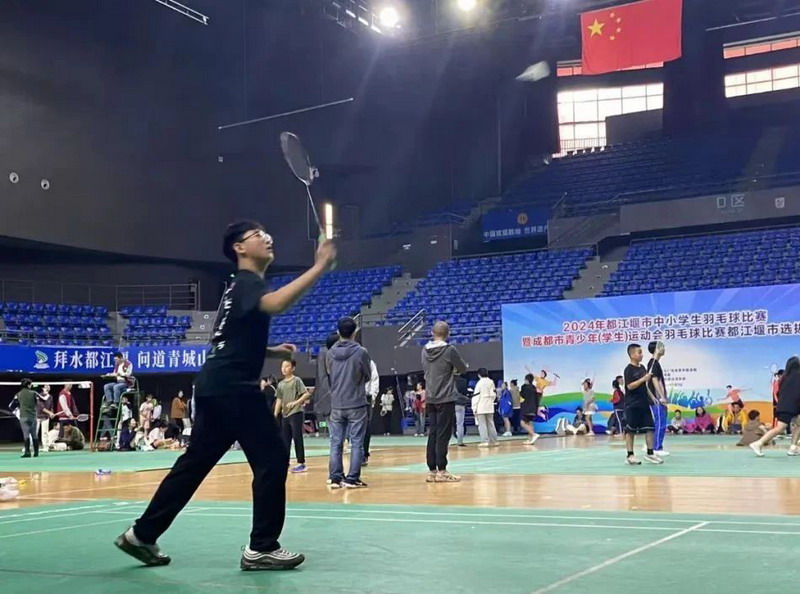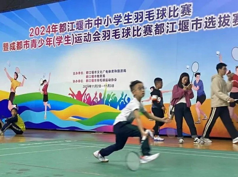 2024年11月2日—11月3日,都江堰市中小学生羽毛球比赛暨成都市青少年(学生)运动会羽毛球比赛都江堰市选拔赛在飞龙体育馆举行,我校17名运动员参赛。