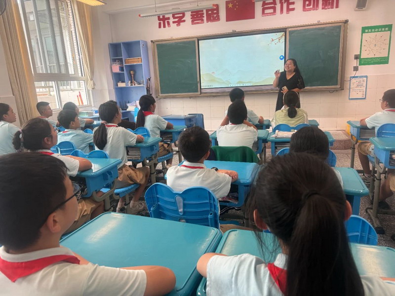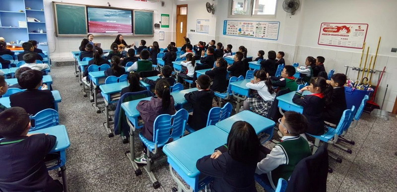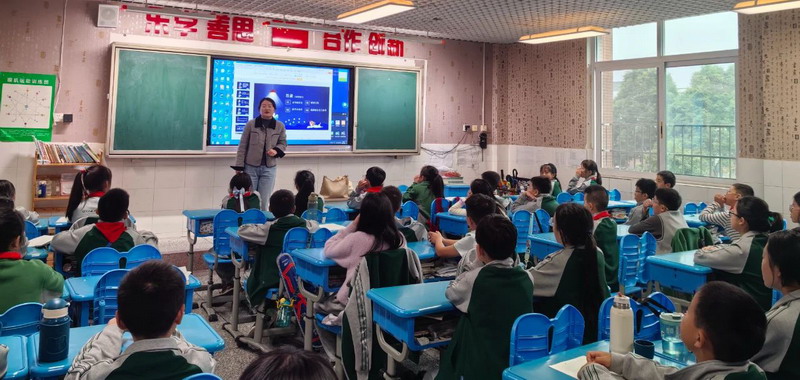 二(5)中队张洛慈家长为孩子们带来家长课堂《有趣的字母》。课堂中孩子们感受到字母学习的快乐,也对自然拼读有了初步的感知。