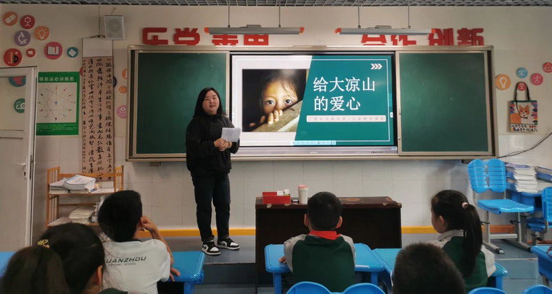 五(8)中队孙夕彤妈妈带来《给大凉山的爱心》。