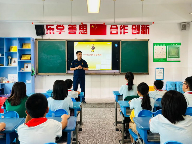 六(2)中队向钰睿爸爸为孩子们讲解在火灾发生时如何正确逃生,强调消防安全的重要性。并鼓励孩子们把学到的知识告诉家人和朋友,让更多的人了解消防安全知识。