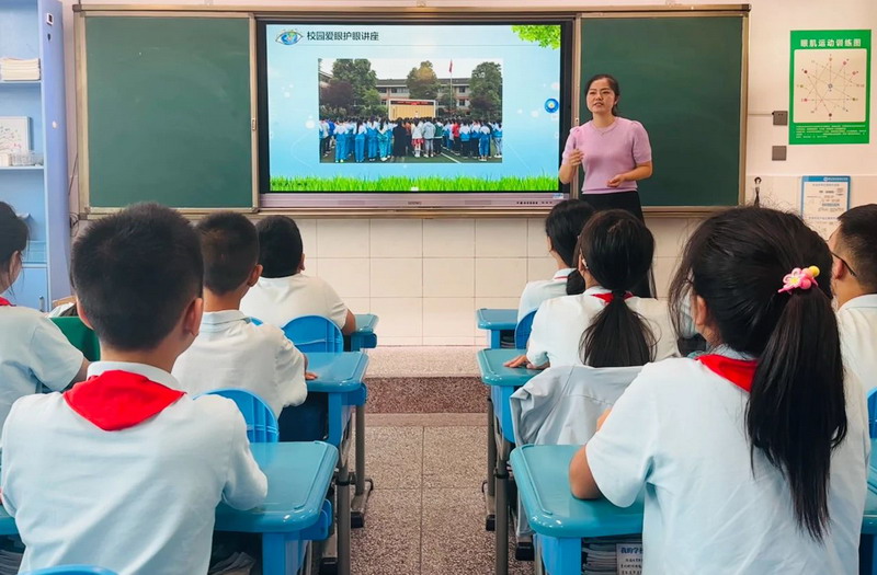 六(4)中队岳锡锋妈妈给孩子们带来的《保护视力,预防近视》从小做起。