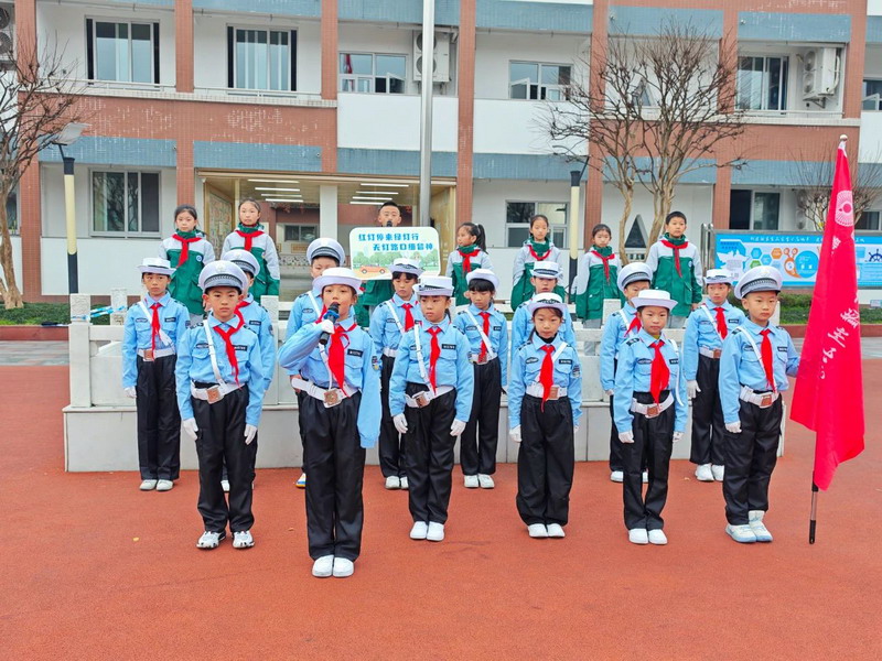 升旗仪式上,五(1)中队的队员们以“遵守交通规则 争做文明学生”为题进行宣讲,生动地向全校师生介绍交通安全的重要性,号召全校师生一起争做文明交通宣传员,用小小的举动创造更平安和谐的社会!学校“堰小明”文明实践支队队员向全校师生发出倡议,倡导全校师生提高安全意识,文明出行,做到防范在先、警惕在前,人人争做文明交通的倡导者和践行者,携手共创安全、有序的交通环境。