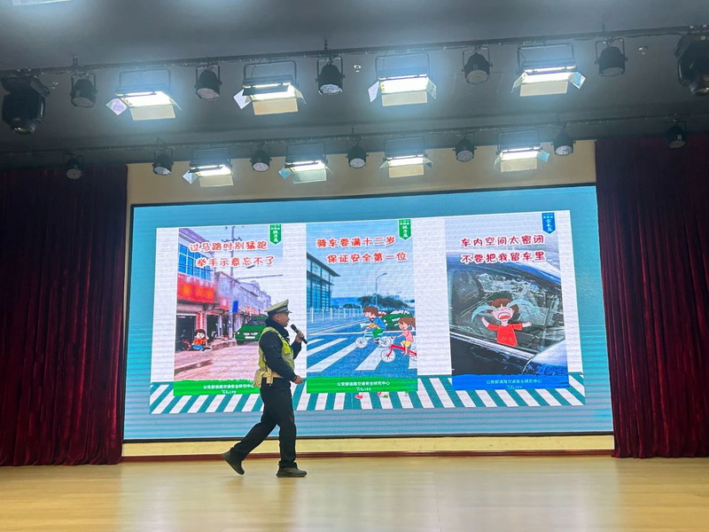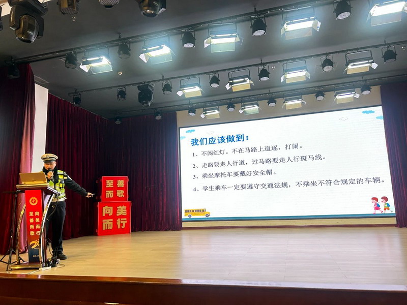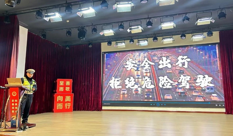 On December 16th, 2024, the police officers of the Traffic Police Brigade of Dujiangyan Irrigation Project Public Security Bureau brought a lively and profound lecture on traffic safety knowledge to freshmen.