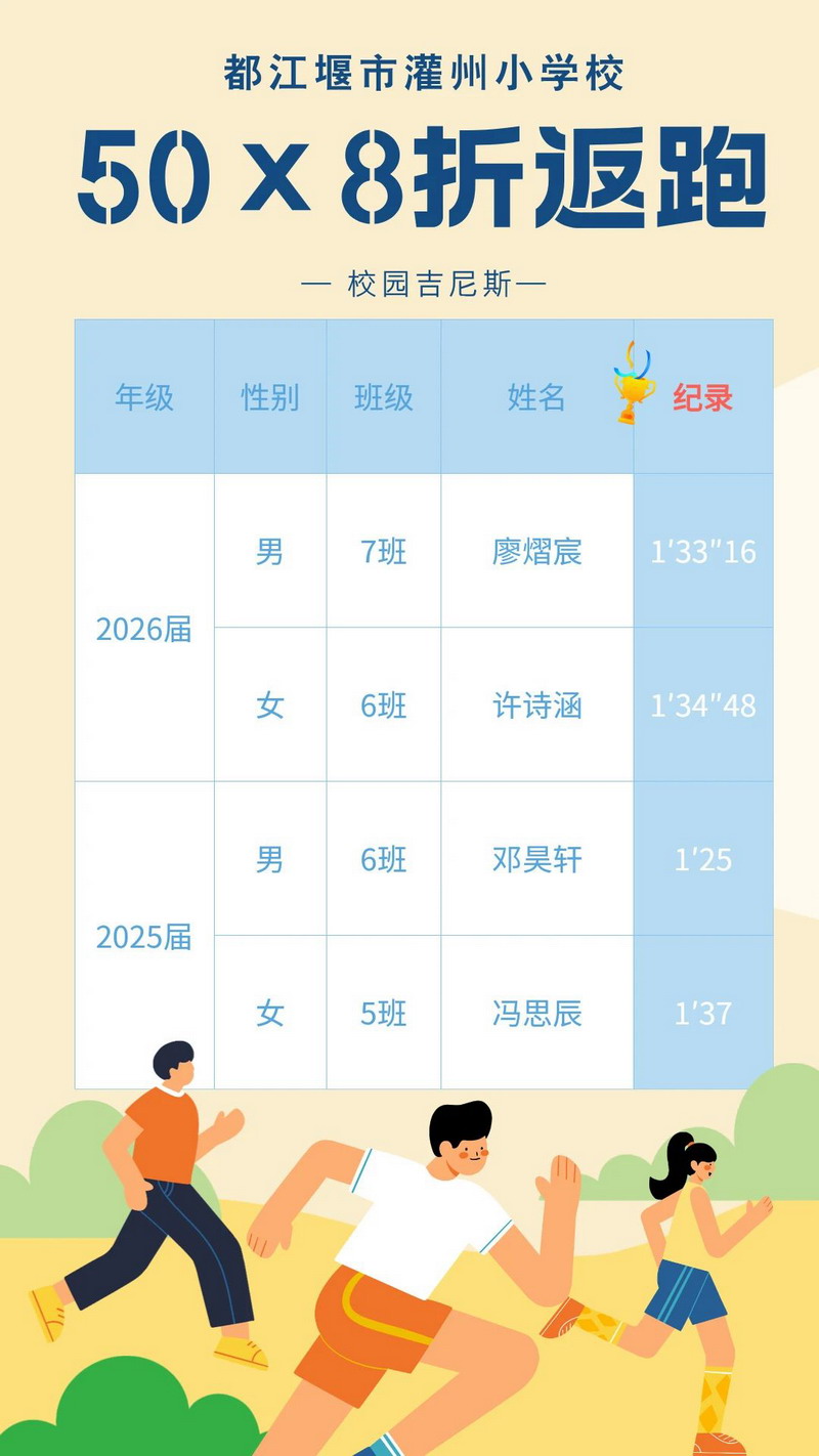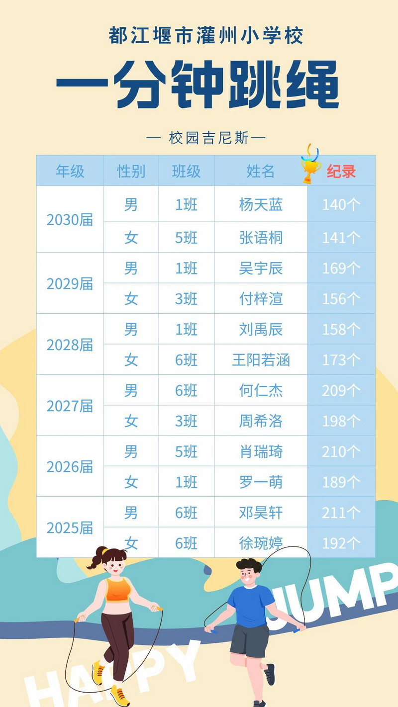 让我们一起来目睹个人赛场上各年级“吉尼斯”创造者的风采吧!