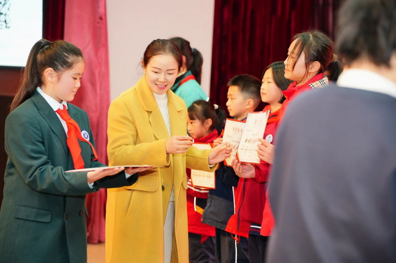 与会领导为获奖学生颁发了荣誉证书,现场掌声雷动,气氛热烈。活动中我校任梓恩、朱沫谦、方依伊、陈华妤、吕林壕5名同学荣获市“新时代好少年”荣誉称号。