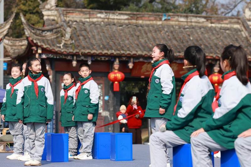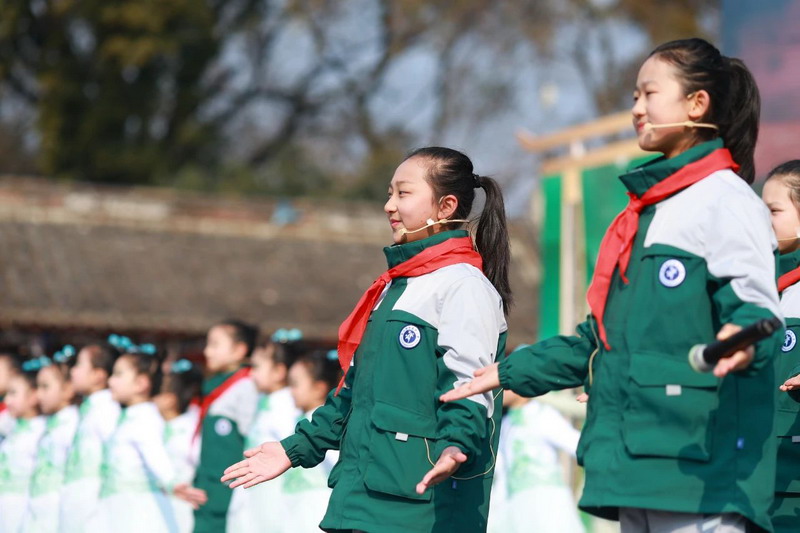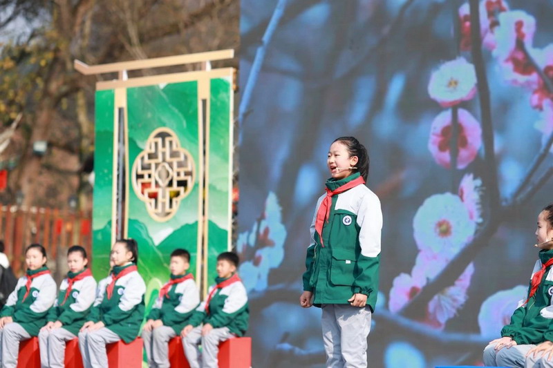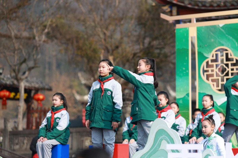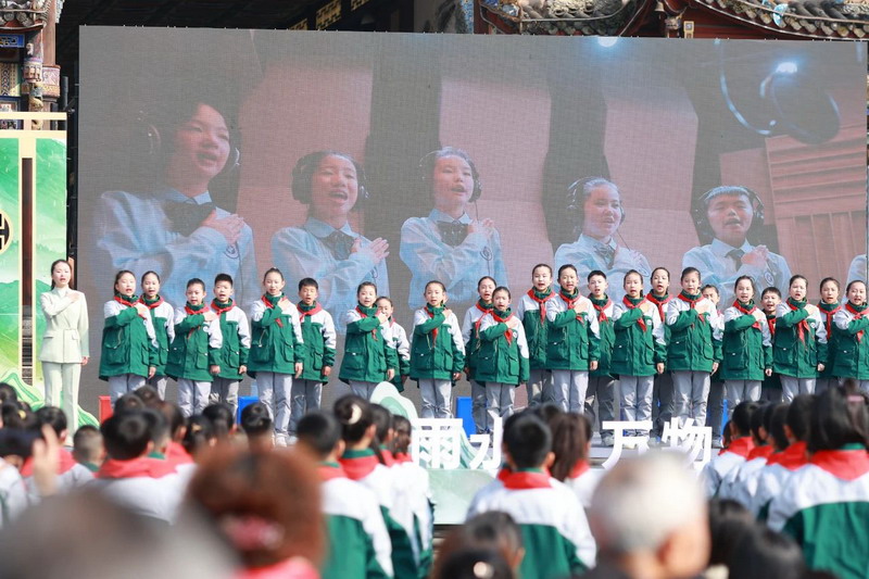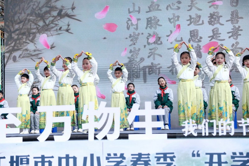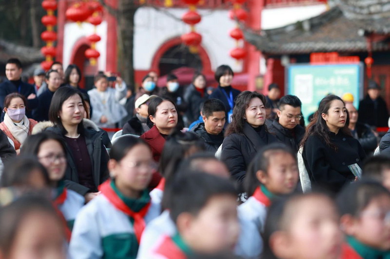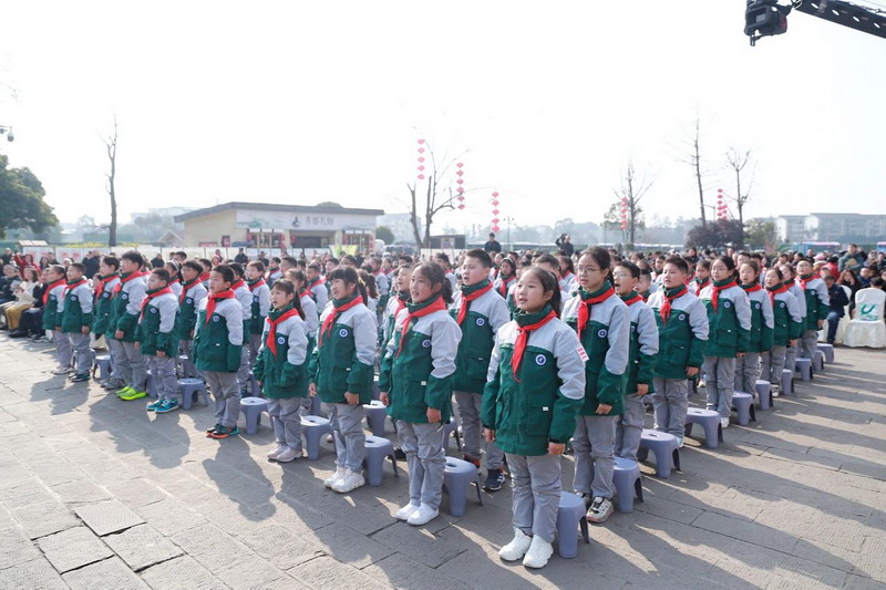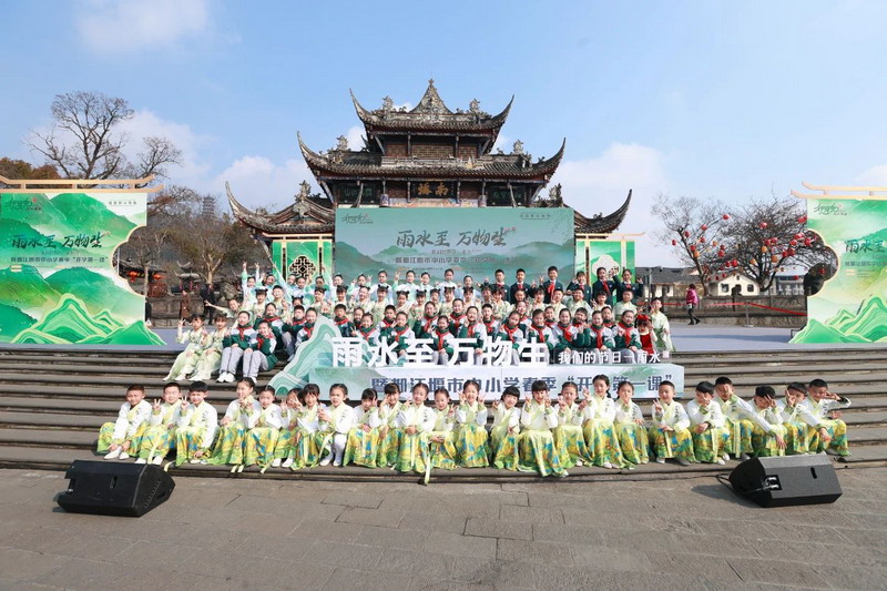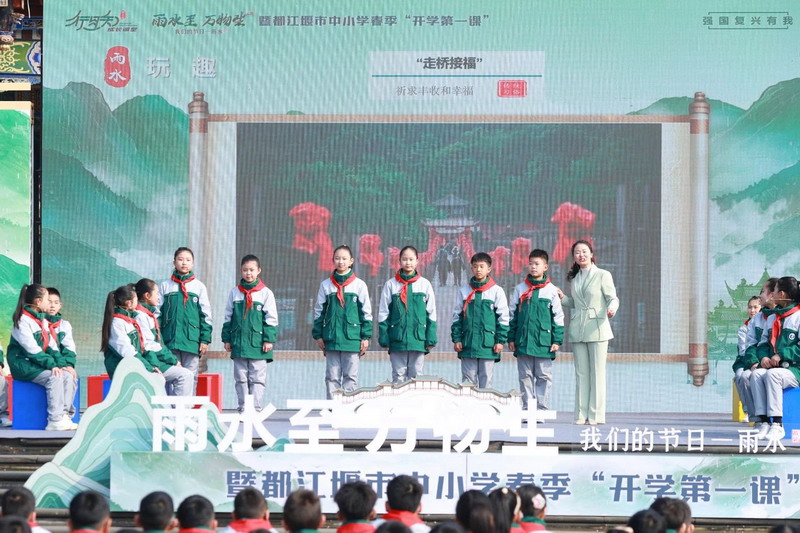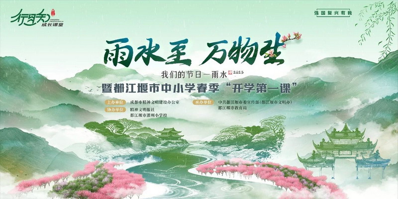 On February 17th, the Nanqiao Square in Dujiangyan City, Sichuan Province, was filled with the warmth of spring as the city's "Our Festival: Rain Water" and the spring season's "First Lesson of the Semester" event took place here.