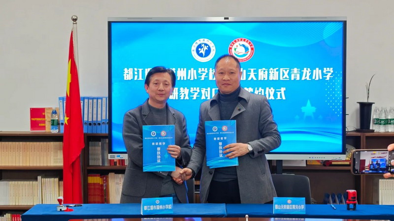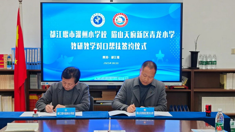3月13日上午,都江堰市灌州小学校园内春意盎然,一场以“共研共进·协同发展”为主题的签约仪式在此举行。眉山天府新区青龙小学教师团队与灌州小学教师相聚一堂,通过“常态课听课+大课间活动观摩+ 签约座谈”的深度互动,正式开启两校为期三年的教研教学对口帮扶合作。