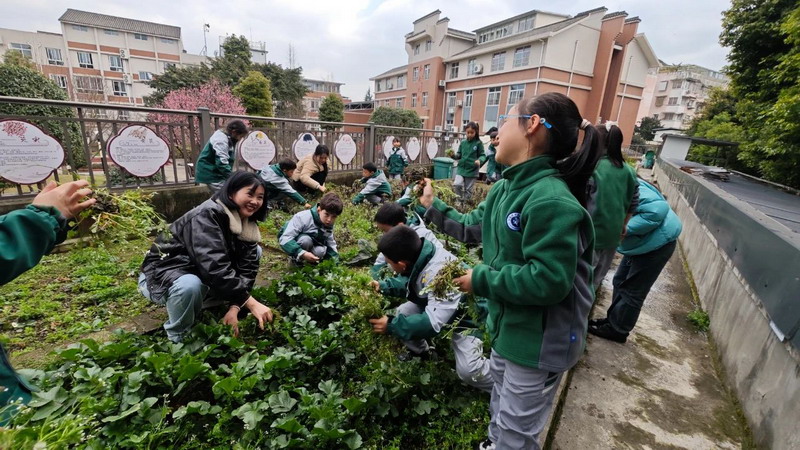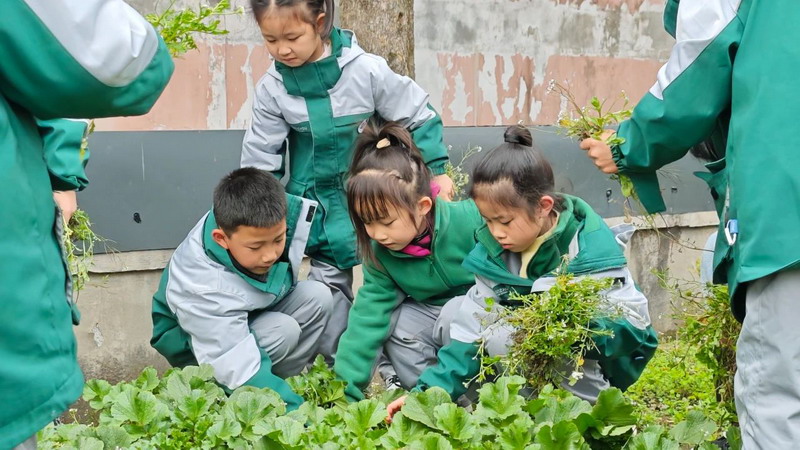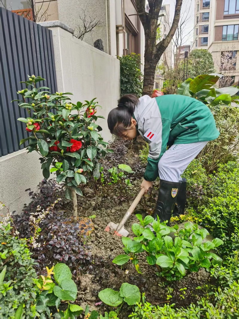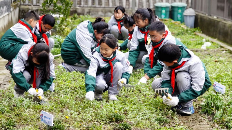 平日里,同学们在老师的带领下来到百草园,平整土地、清理杂草。大家分工合作,配合默契,不怕脏、不怕累,按照分工扶苗、铲土、浇水,各个环节衔接有序,将绿色、希望的种子播撒在百草园里,在劳动实践中体验种植的快乐。