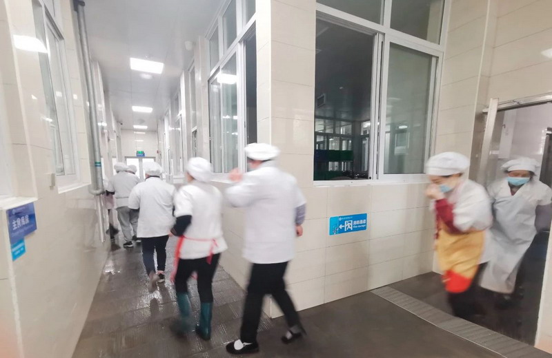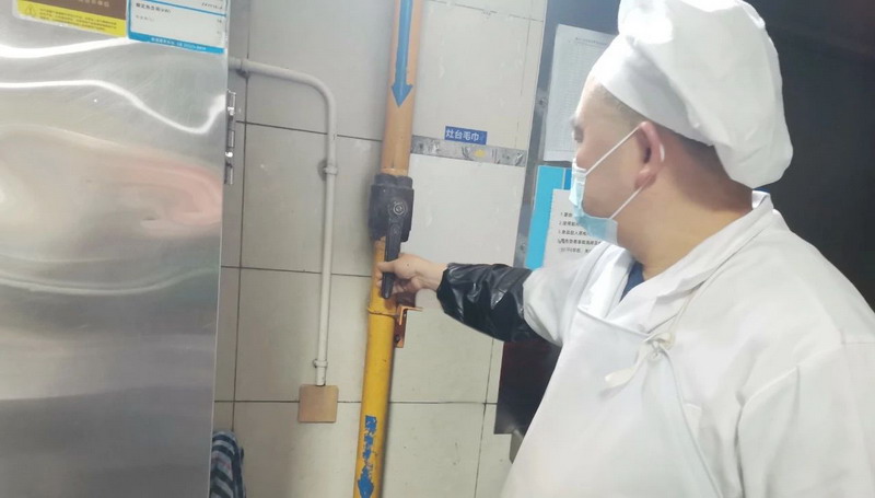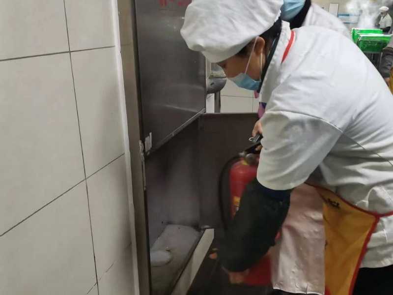 随着警报声响起,演练正式开始。食堂工作人员迅速响应,厨师师傅及时关闭燃气阀门。